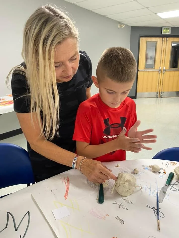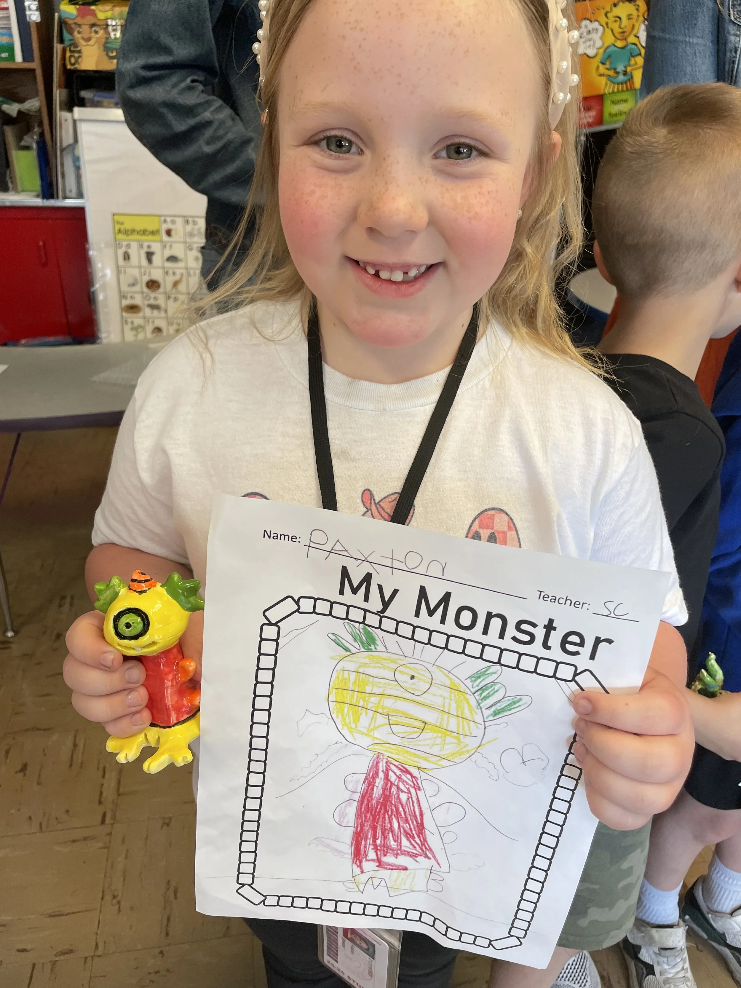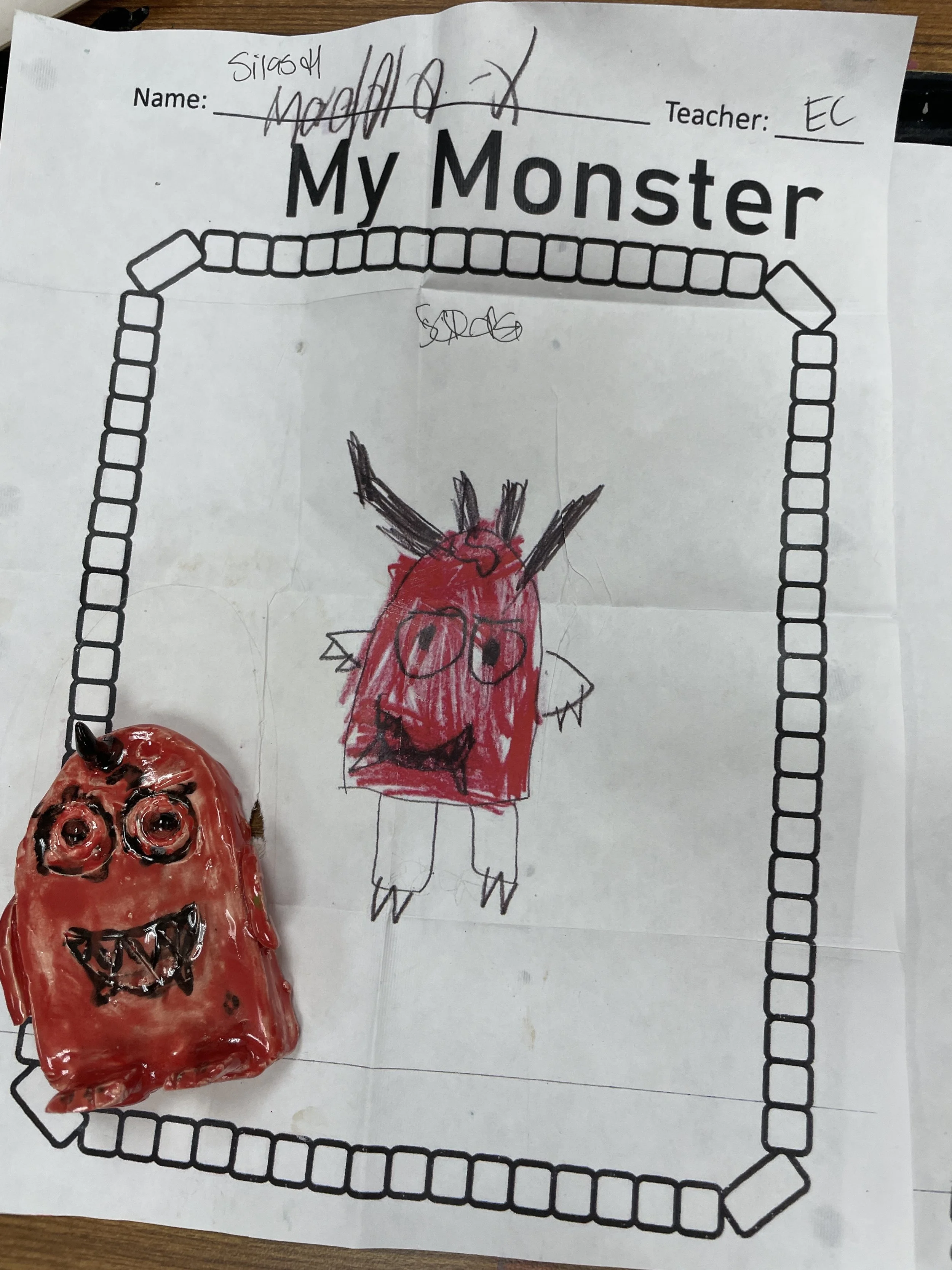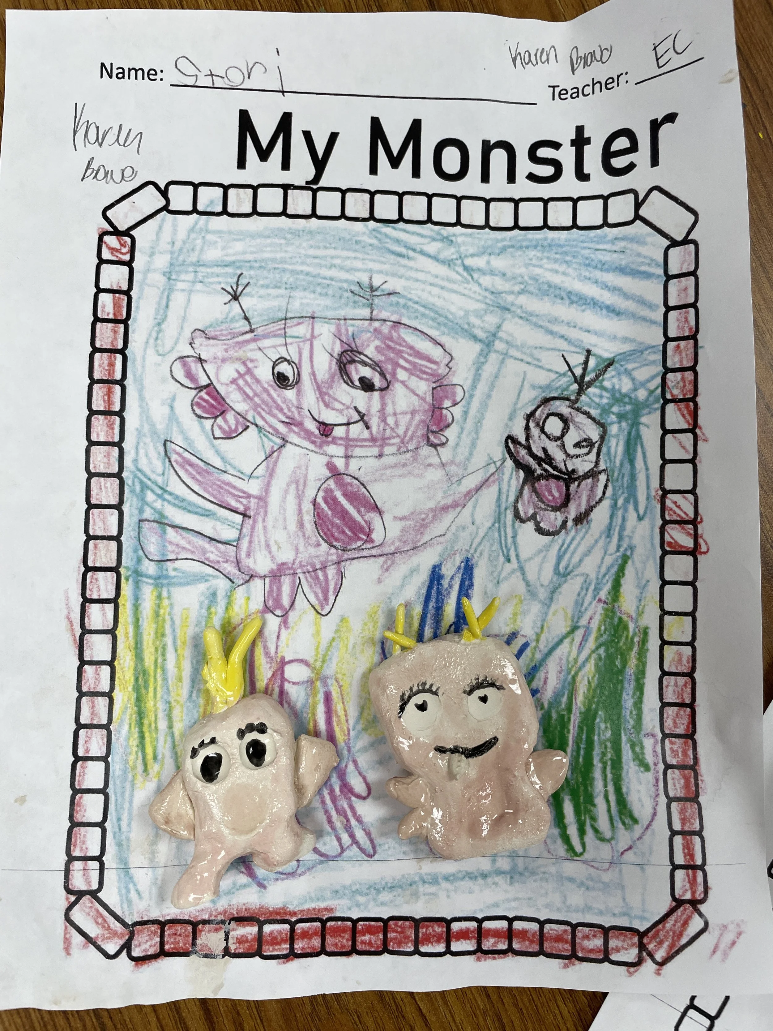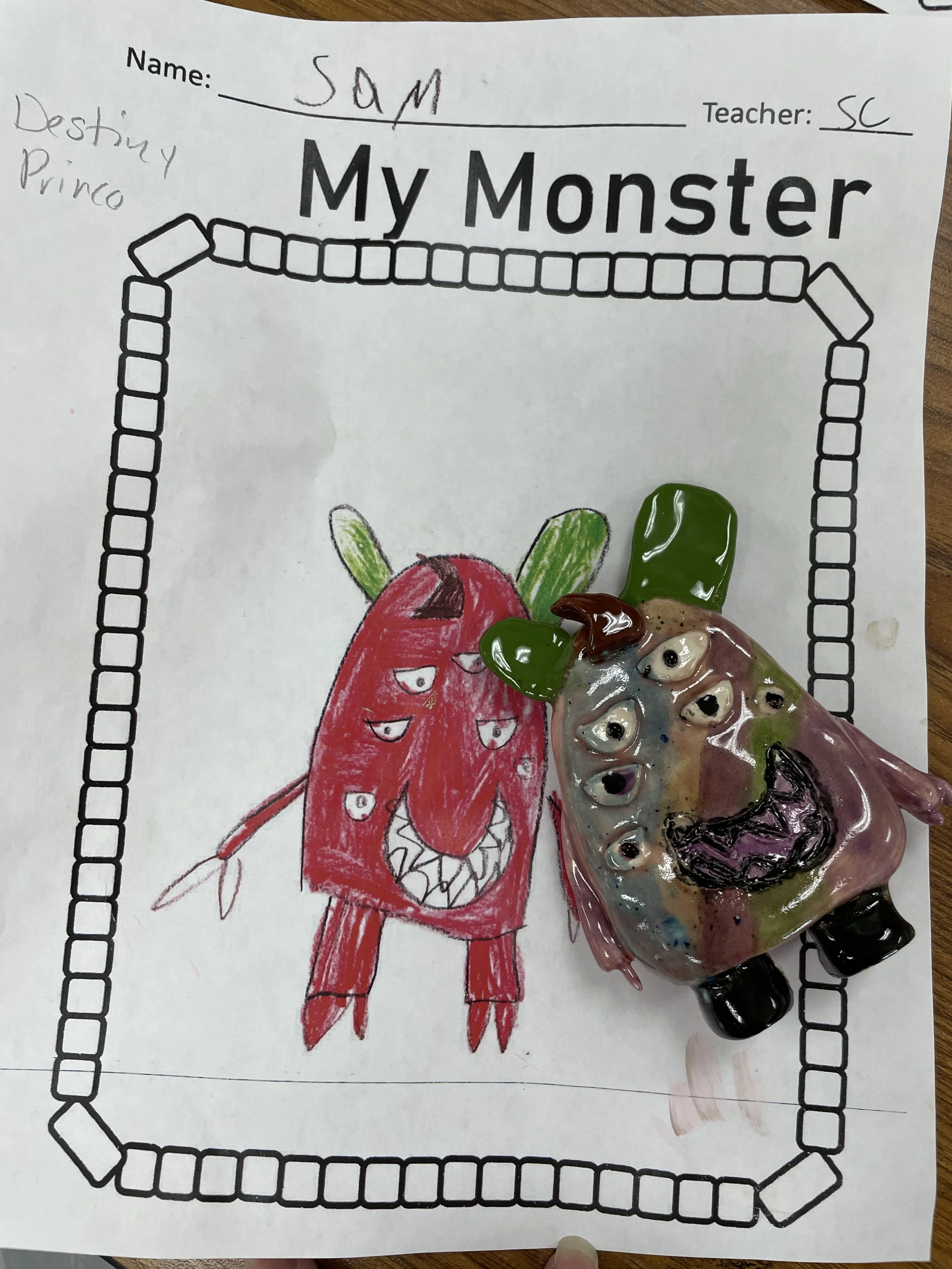 "Ceramic Monster Pals.” These were designed by Kindergarteners at Walker Early Learning Center and created with clay by the Junior Arts Council. Once Finished, the high schoolers gifted the Kindergarteners with their very own monsters that they designed previously.