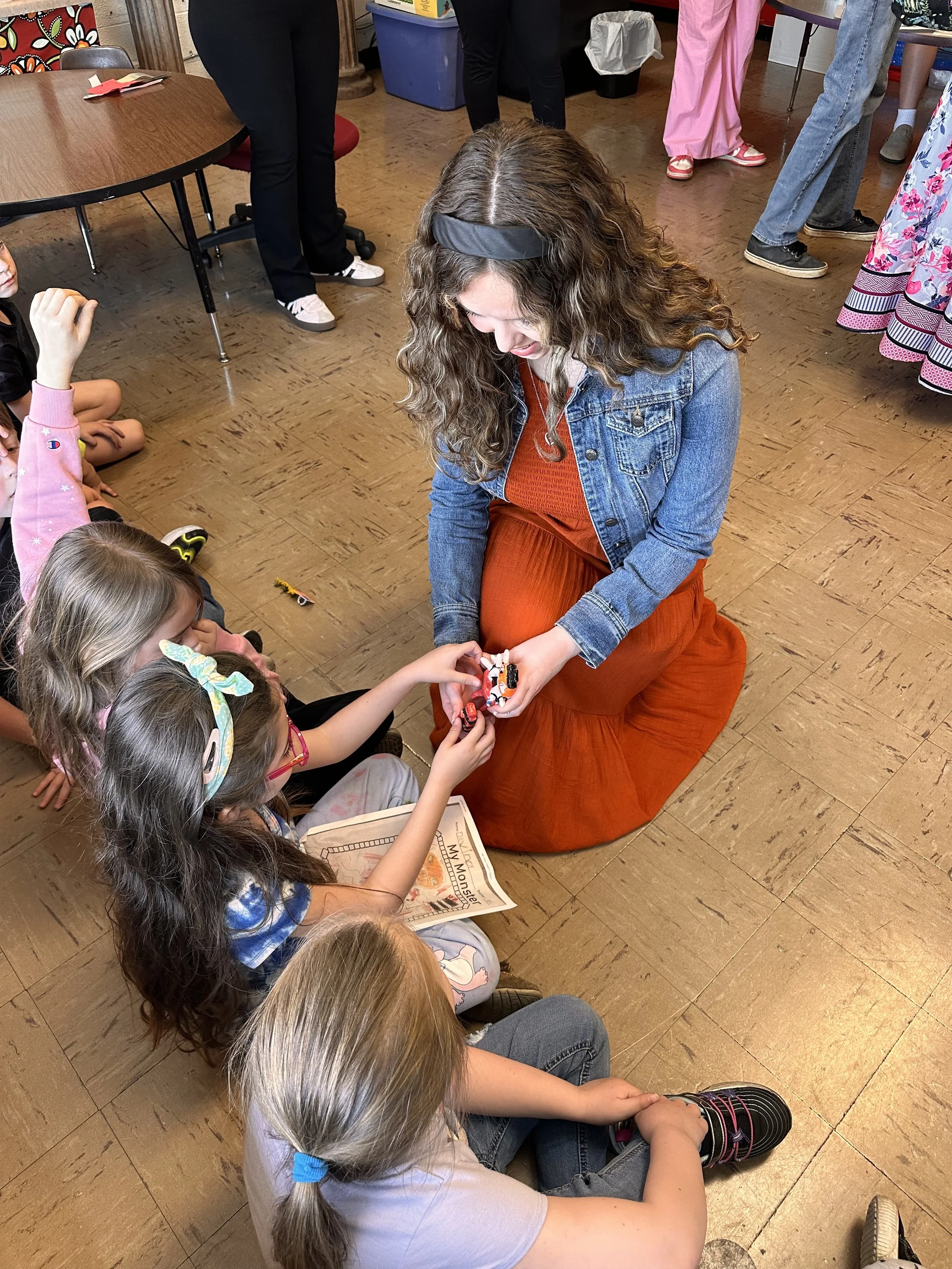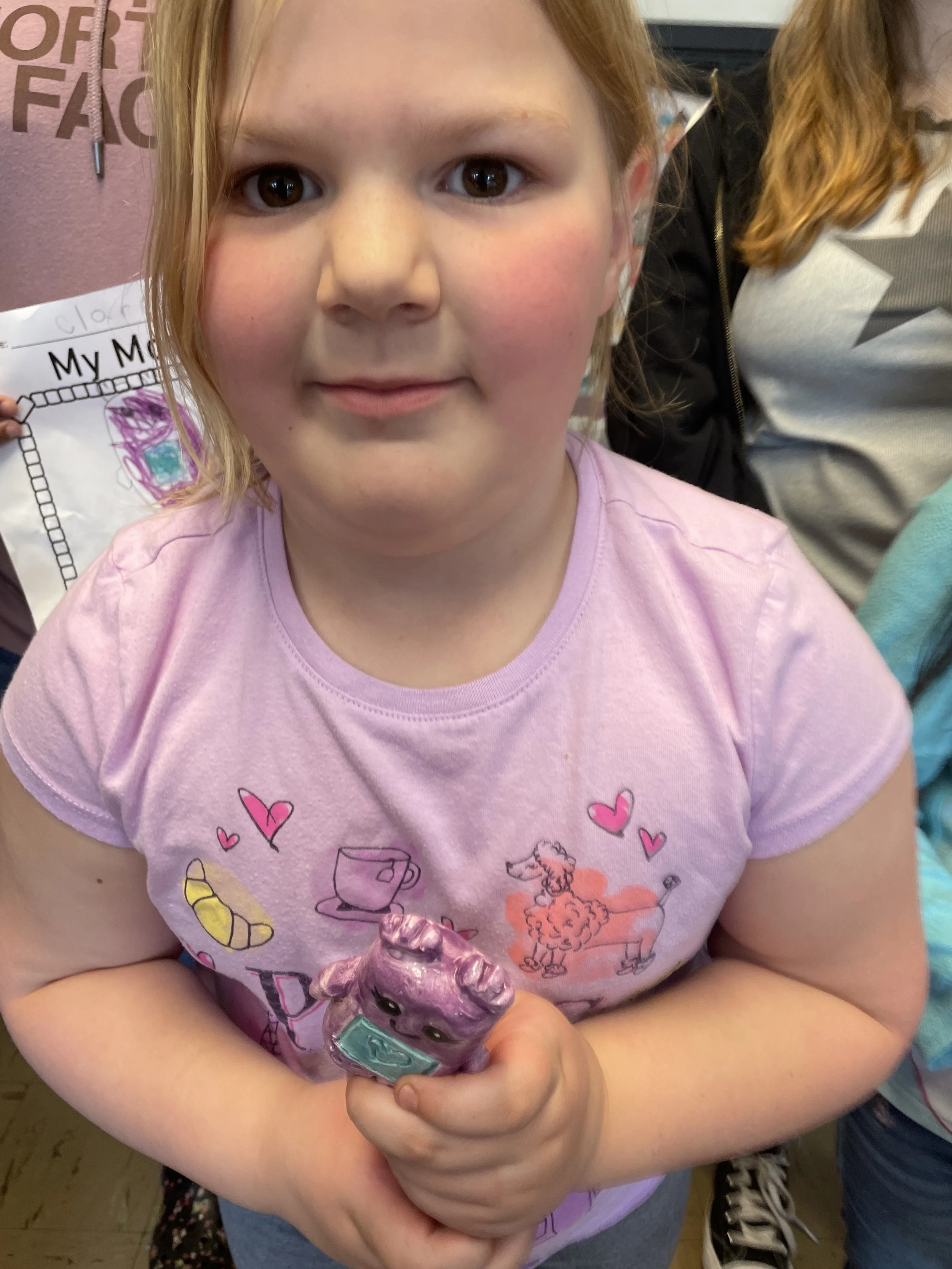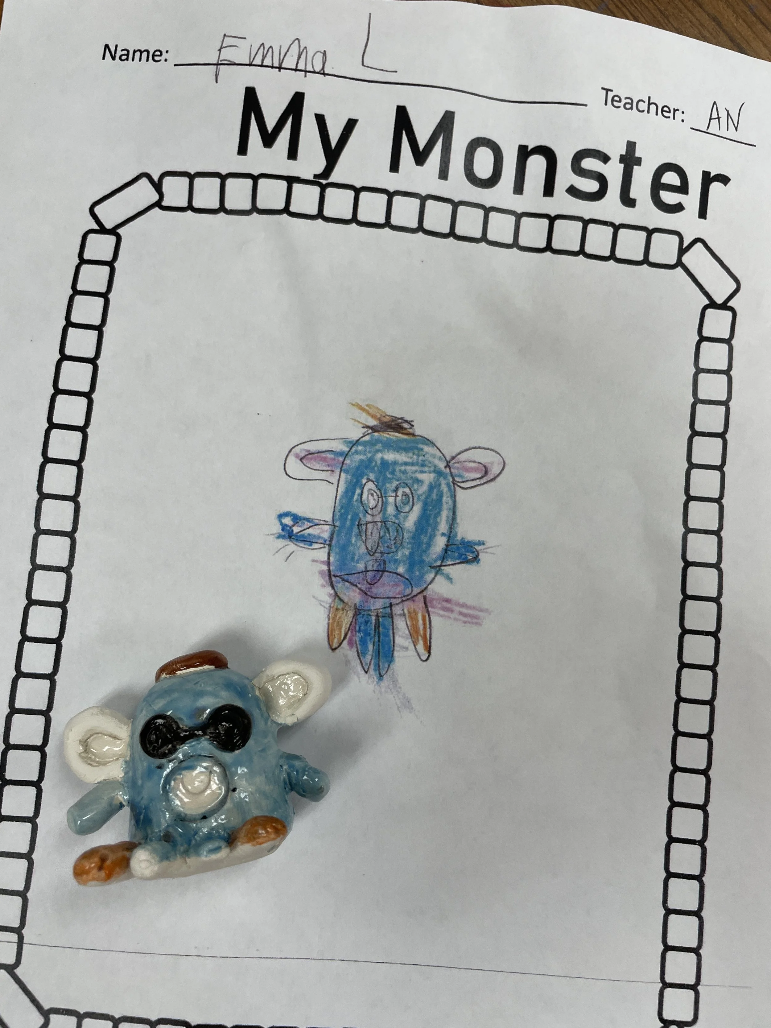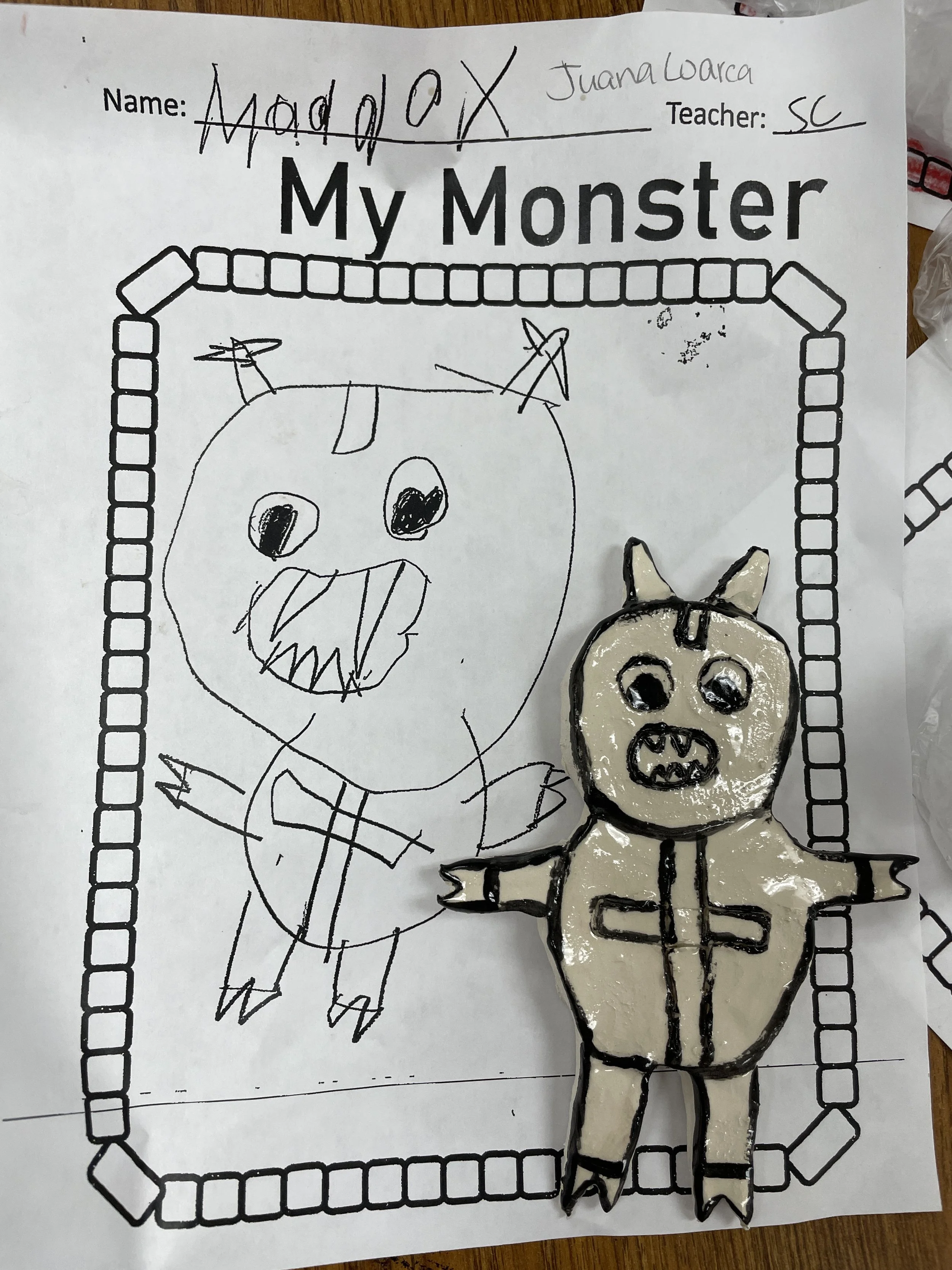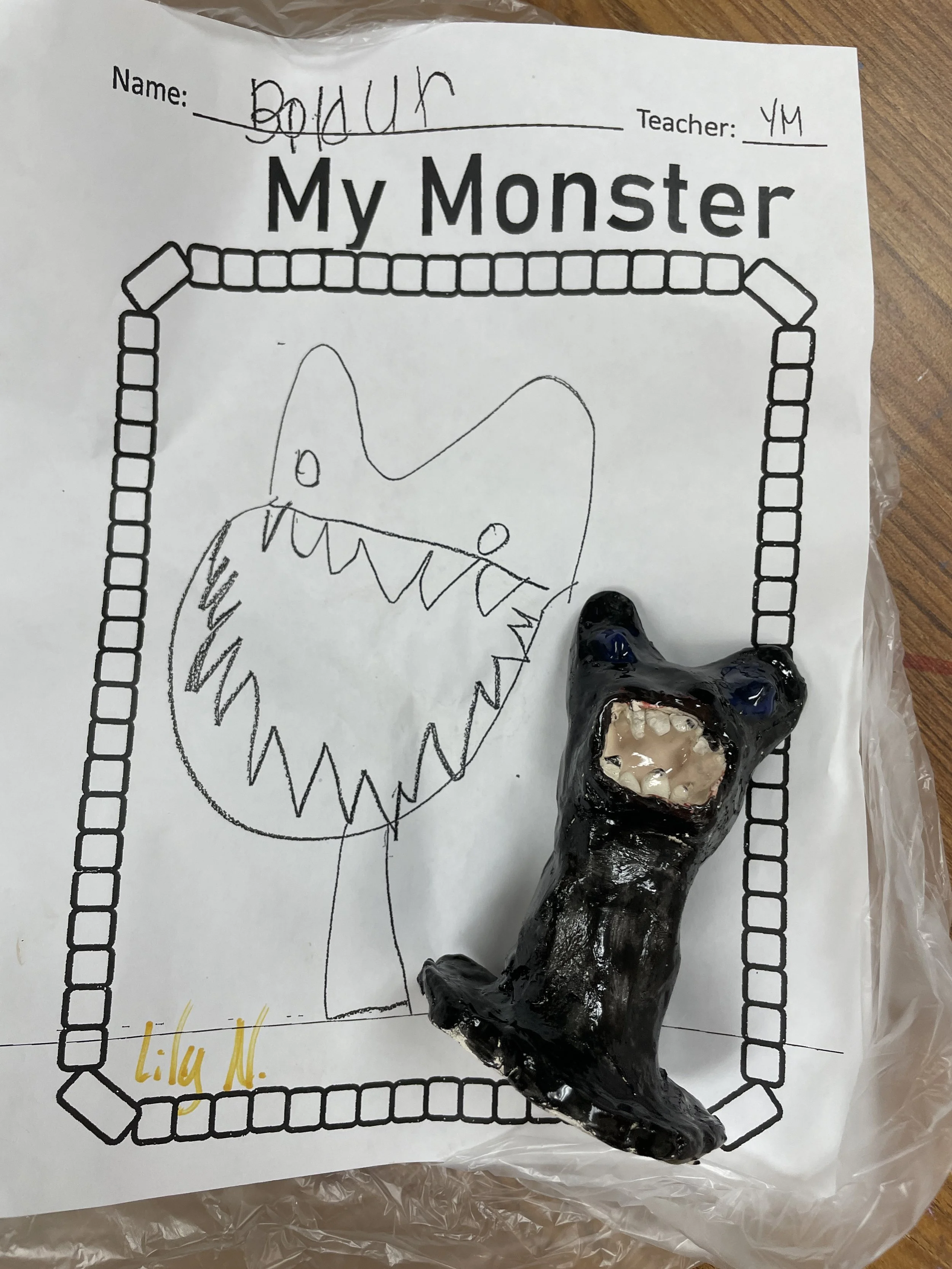 "Ceramic Monster Pals.” These were designed by Kindergarteners at Walker Early Learning Center and created with clay by the Junior Arts Council. Once Finished, the high schoolers gifted the Kindergarteners with their very own monsters that they designed previously.