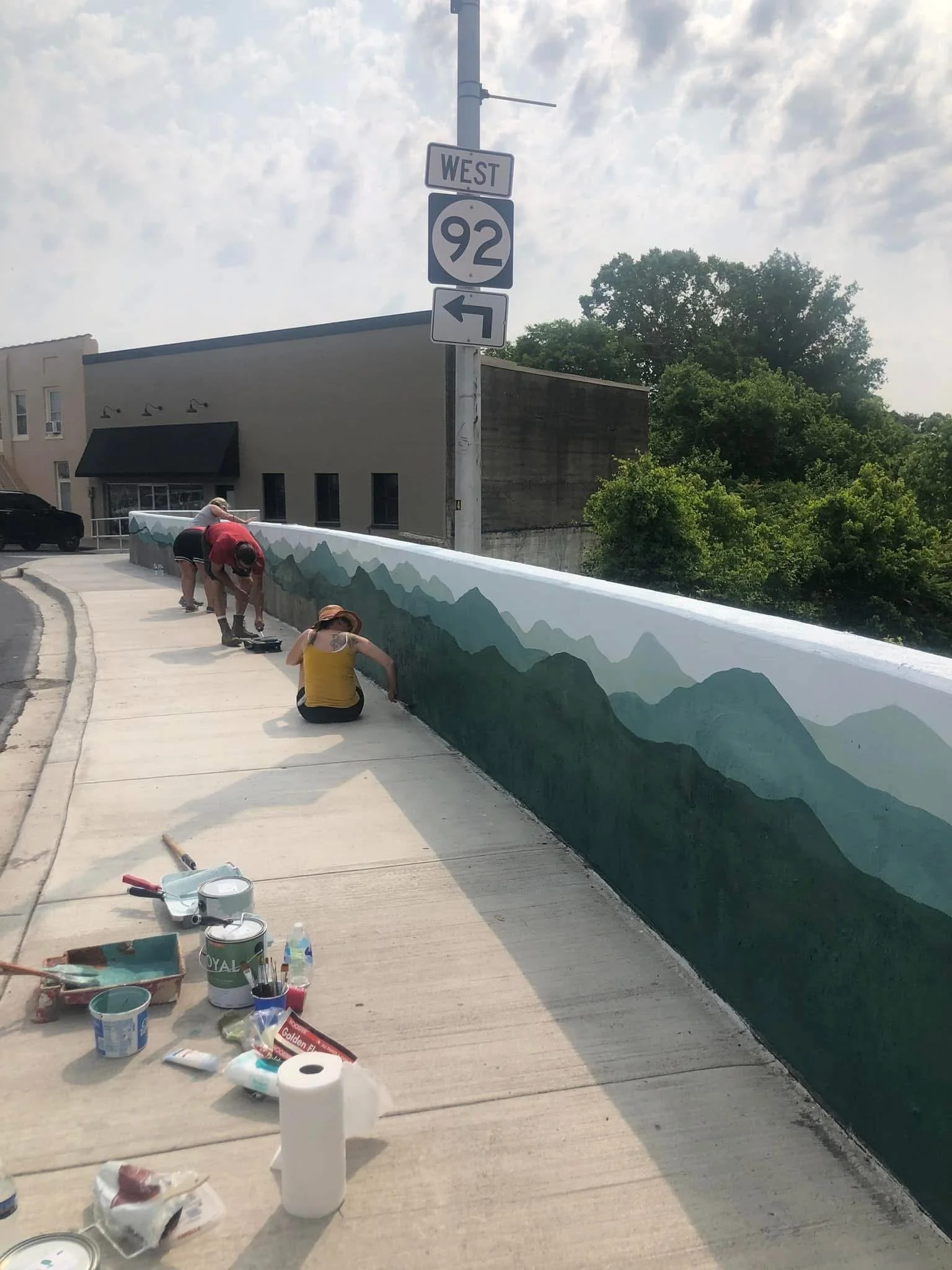 The retaining wall on Main Street, painted by the Arts Council.