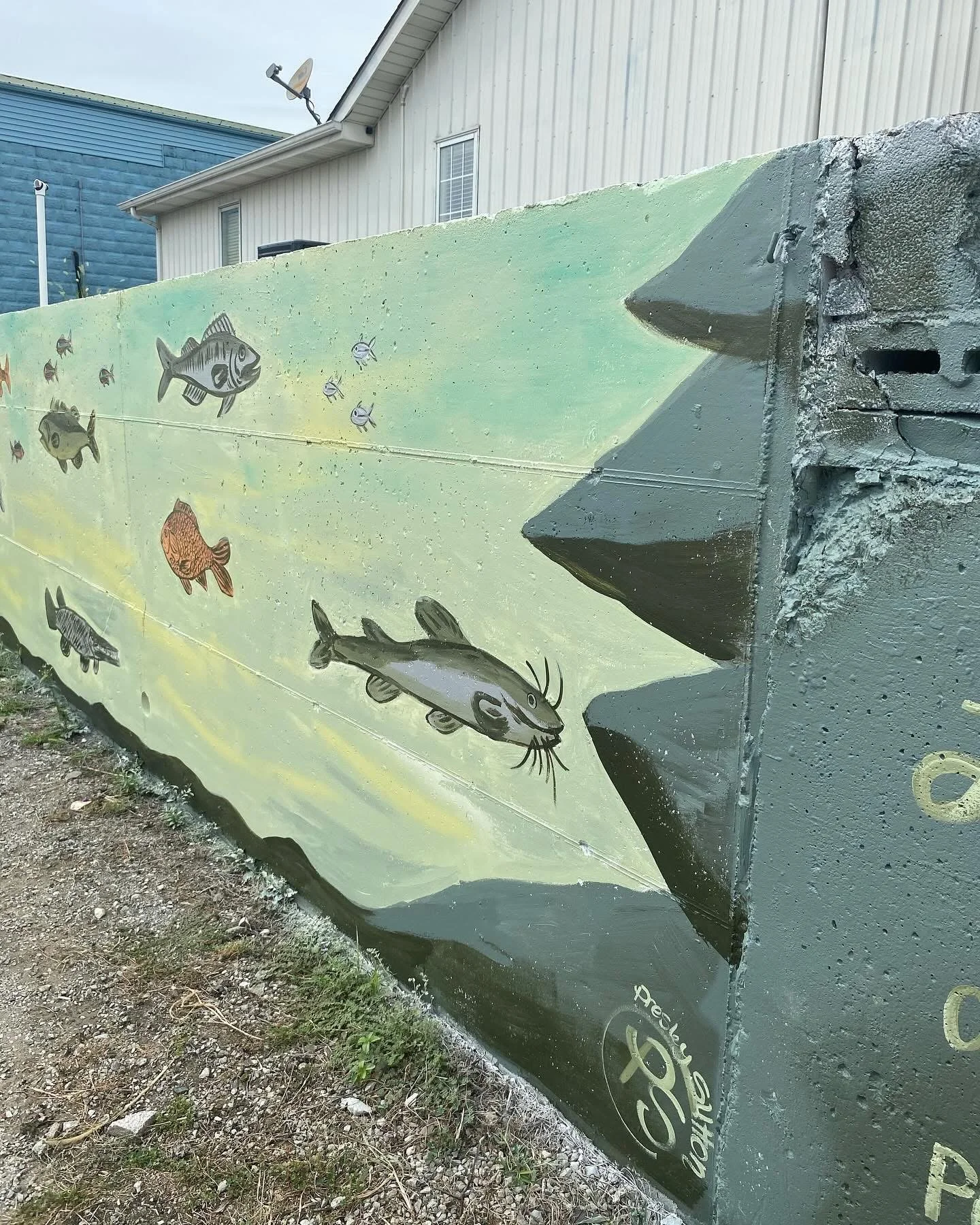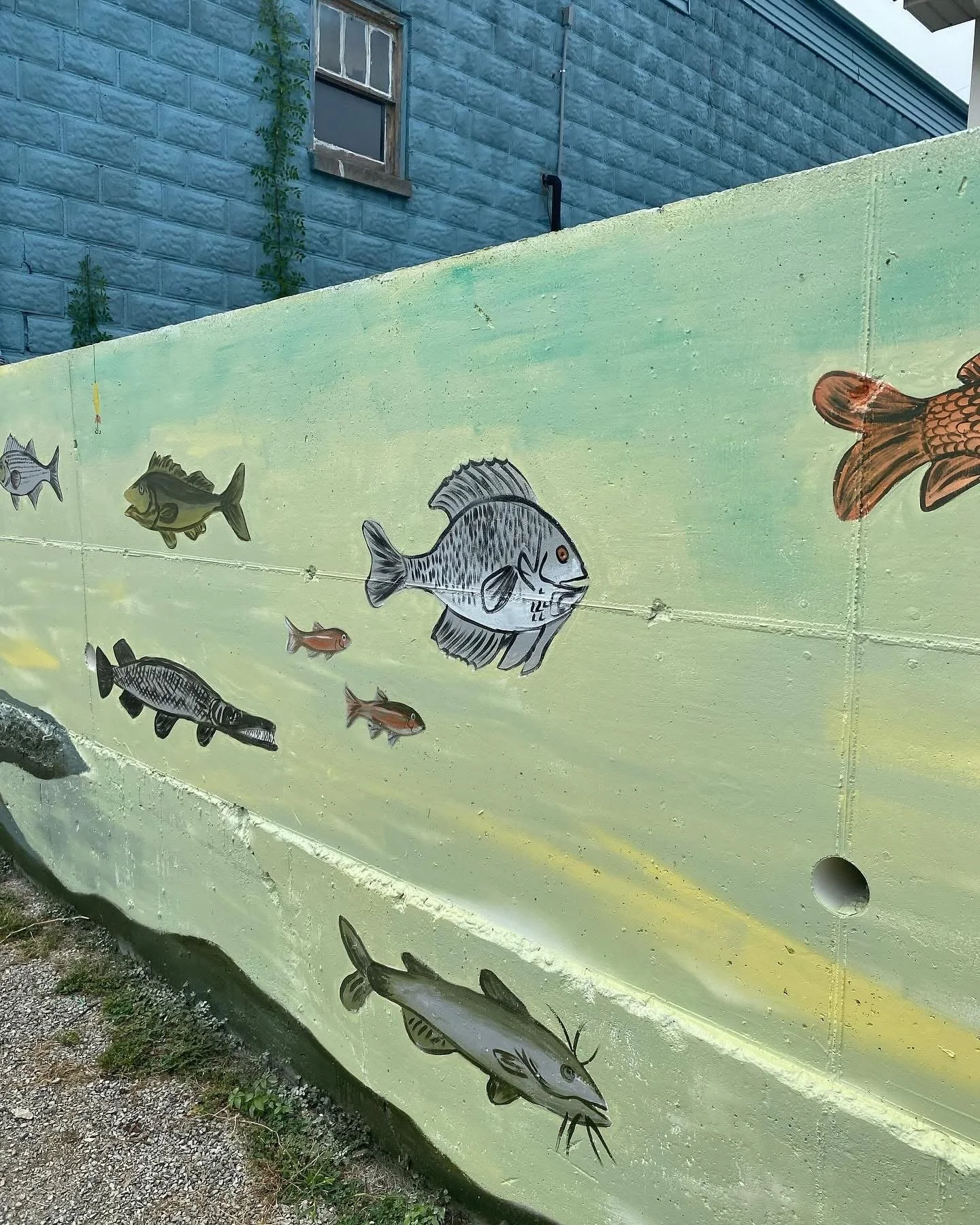 “Fish of Lake Cumberland” painted on the retaining wall located behind Travis Bell’s Law office, painted by Artist Presley Sutton