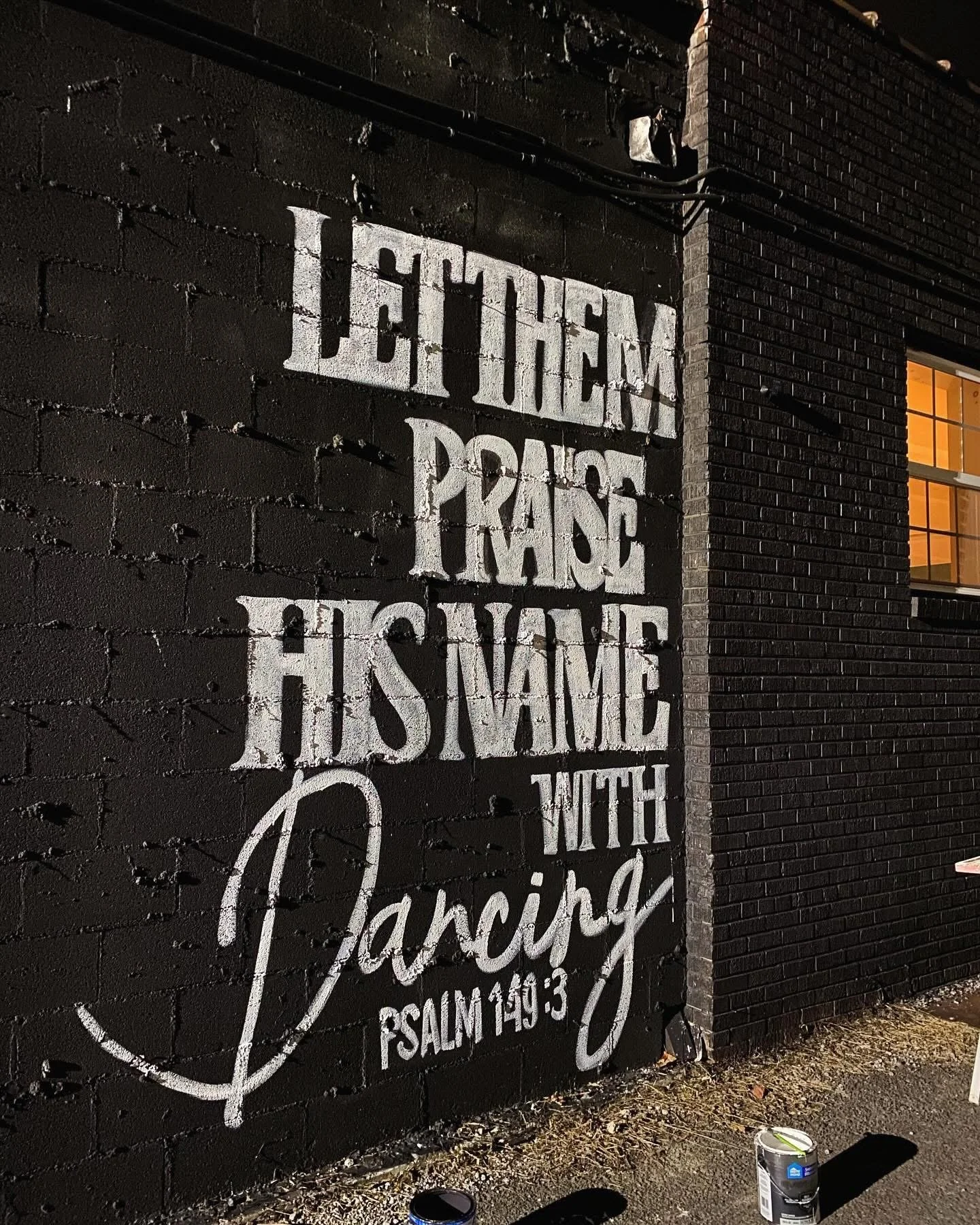 “Let them Praise Him with Dancing” mural painted on the side of Main Street Dance Studio by artist Presley Sutton.